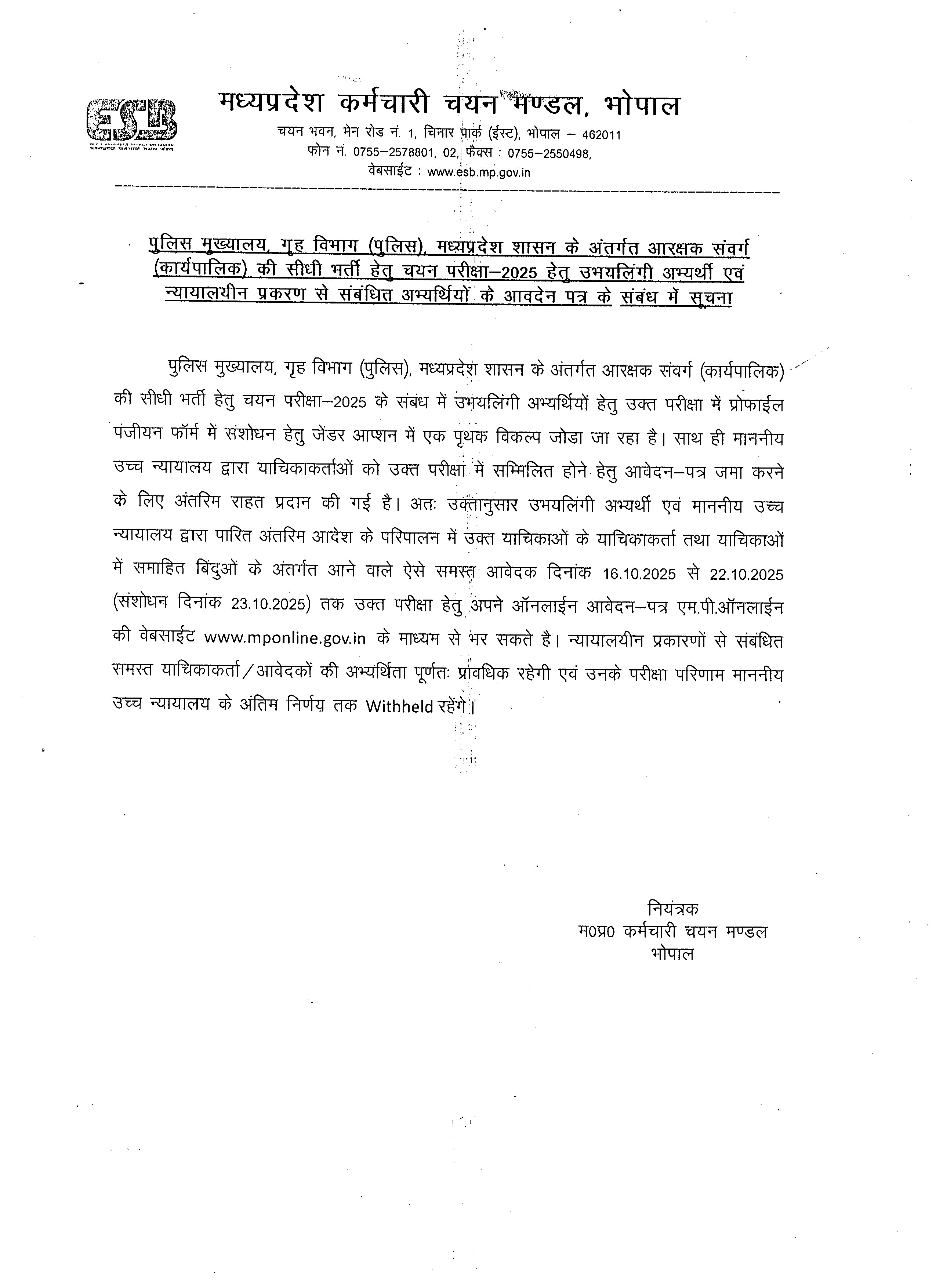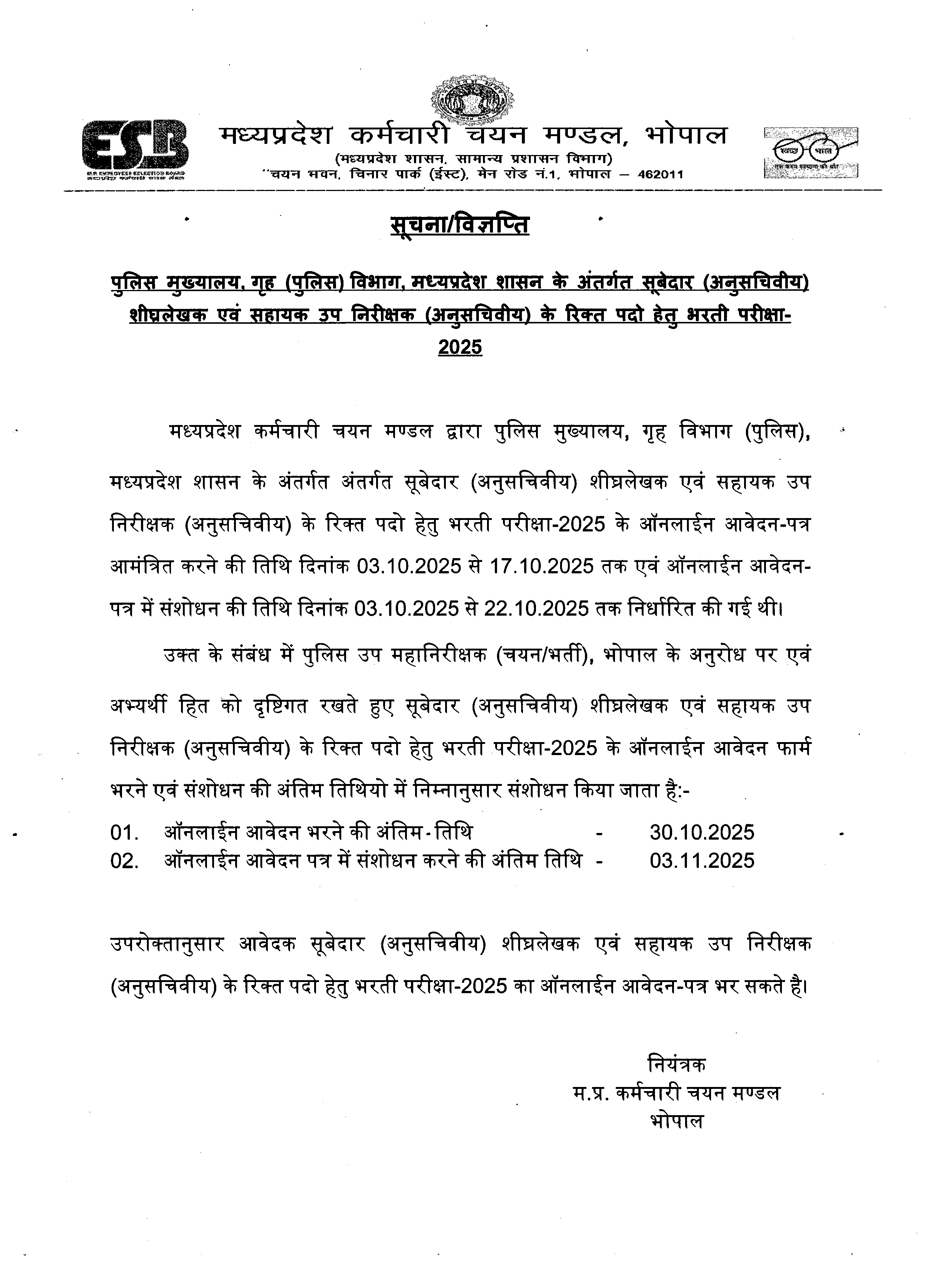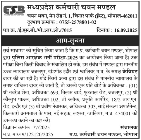 | मध्य प्रदेश कर्मचारी चयन मंडल के logo के संबंध में आम सूचना | Click Here |