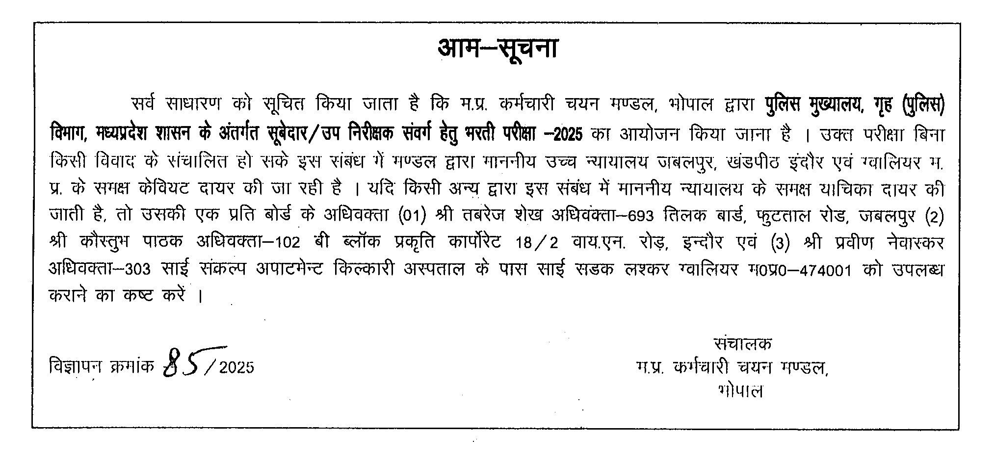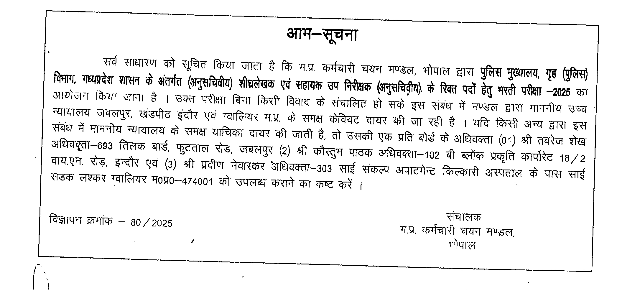 Important Notices / Advertisement to Candidates