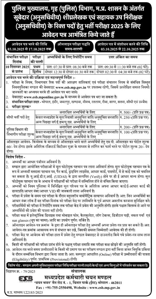 | Police Constable Recruitment Test 2023 दिनांक 27/08/2023 को रतलाम शहर के परीक्षा केंद्र में परिवर्तन | Click Here |