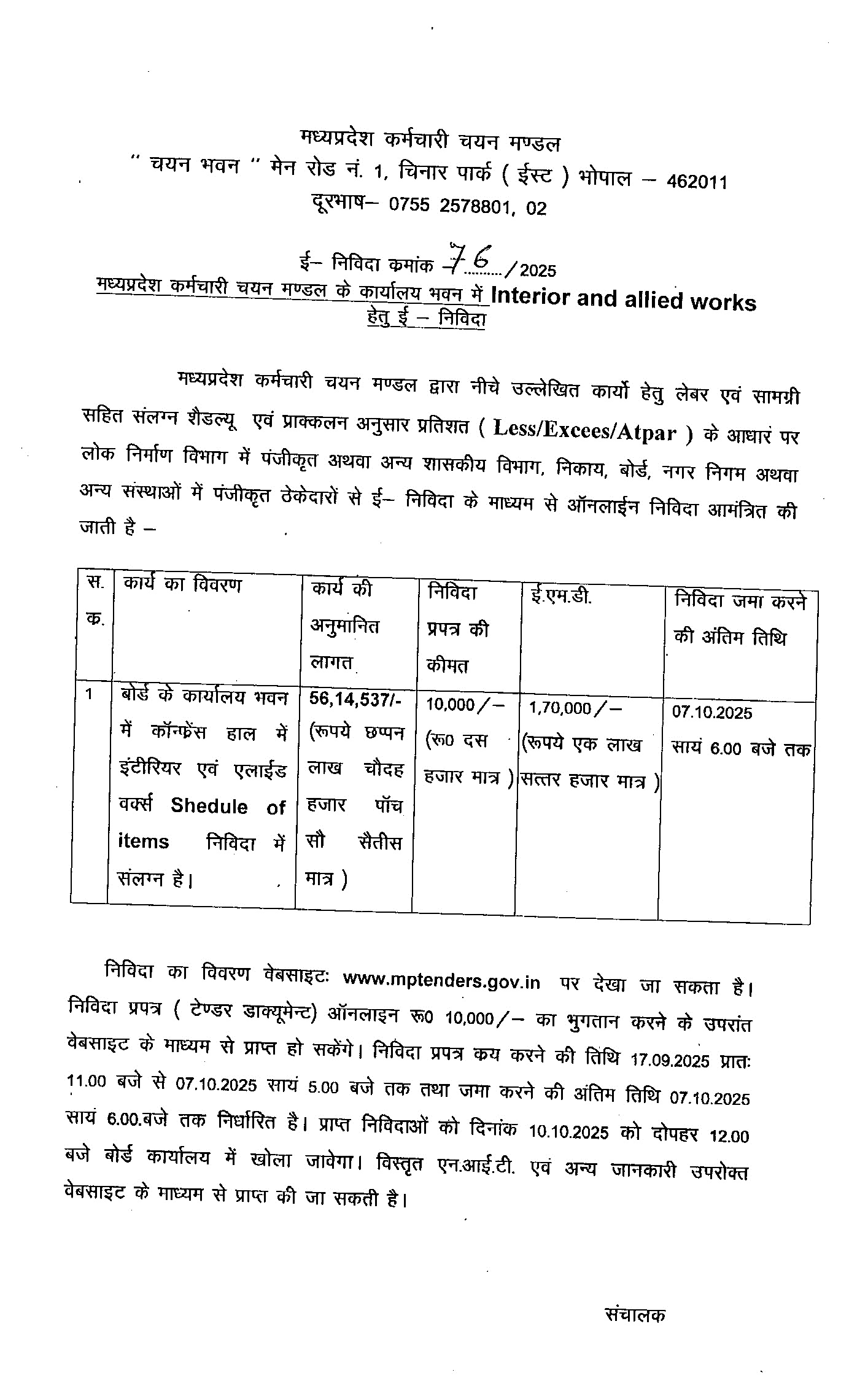 | ई -निविदा - बोर्ड के कार्यालय भवन में interor and allied कार्यो हेतु No. 76/2025 | Click Here |