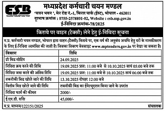 | E-Tender for Taxi on Rent No. 78/2025 Notice | Click Here |
