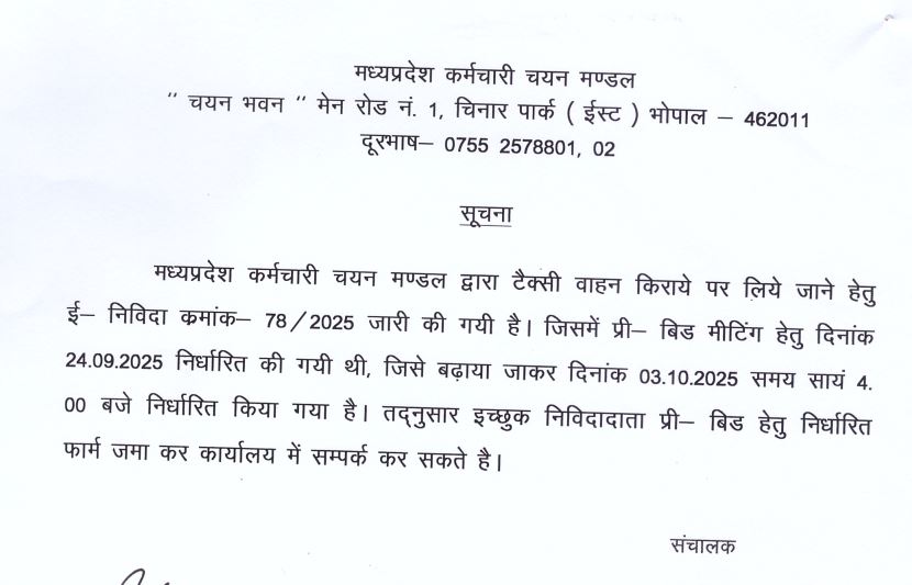 | E-Tender "Empanelment to provide Security Ancillary services during multiple CBT mode examination being conducted by Madhya Pradesh Employees Selection Board throughout the state" Notice No. 26/2024 | Click Here |